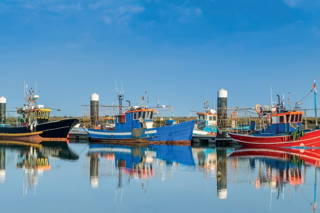 Apanhando um barco no movimentado porto de pesca, sai do rio para atravessar o canal principal da Ria Formosa, uma rica reserva natural de excepcional beleza, perfeita para observação de aves e observação da natureza.